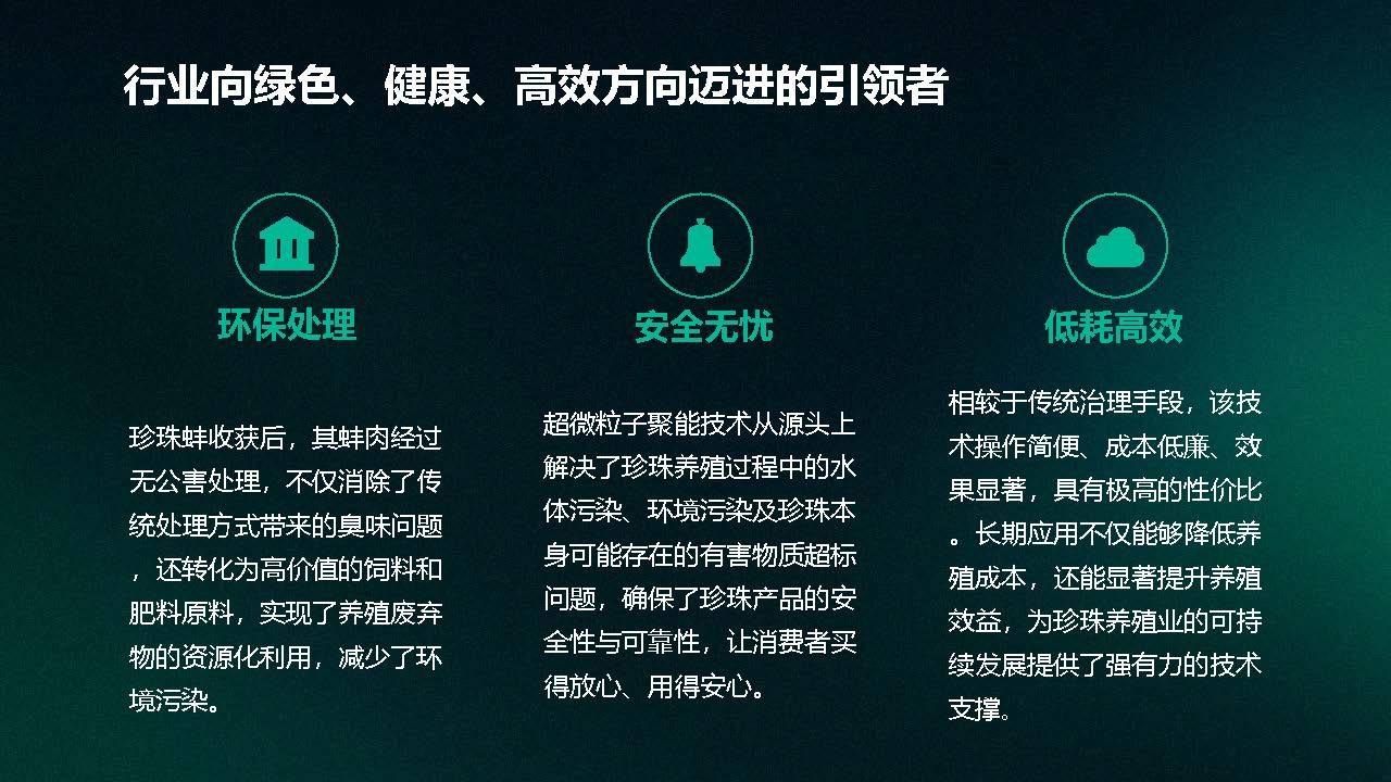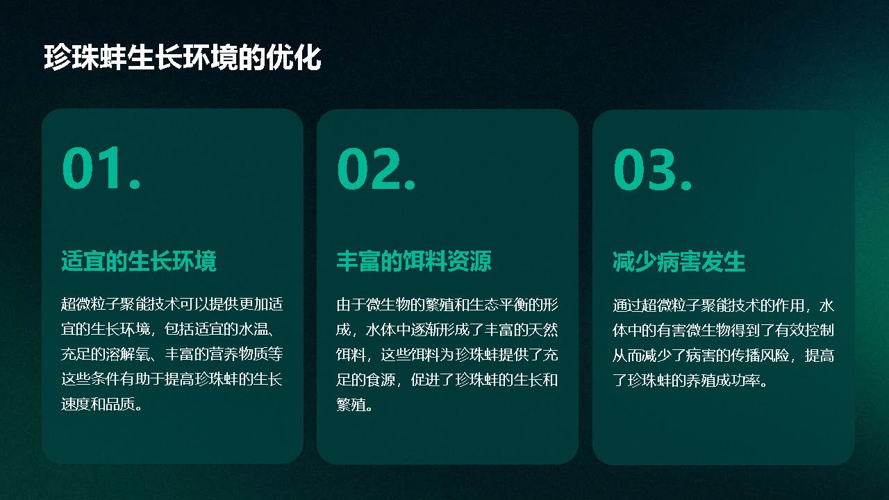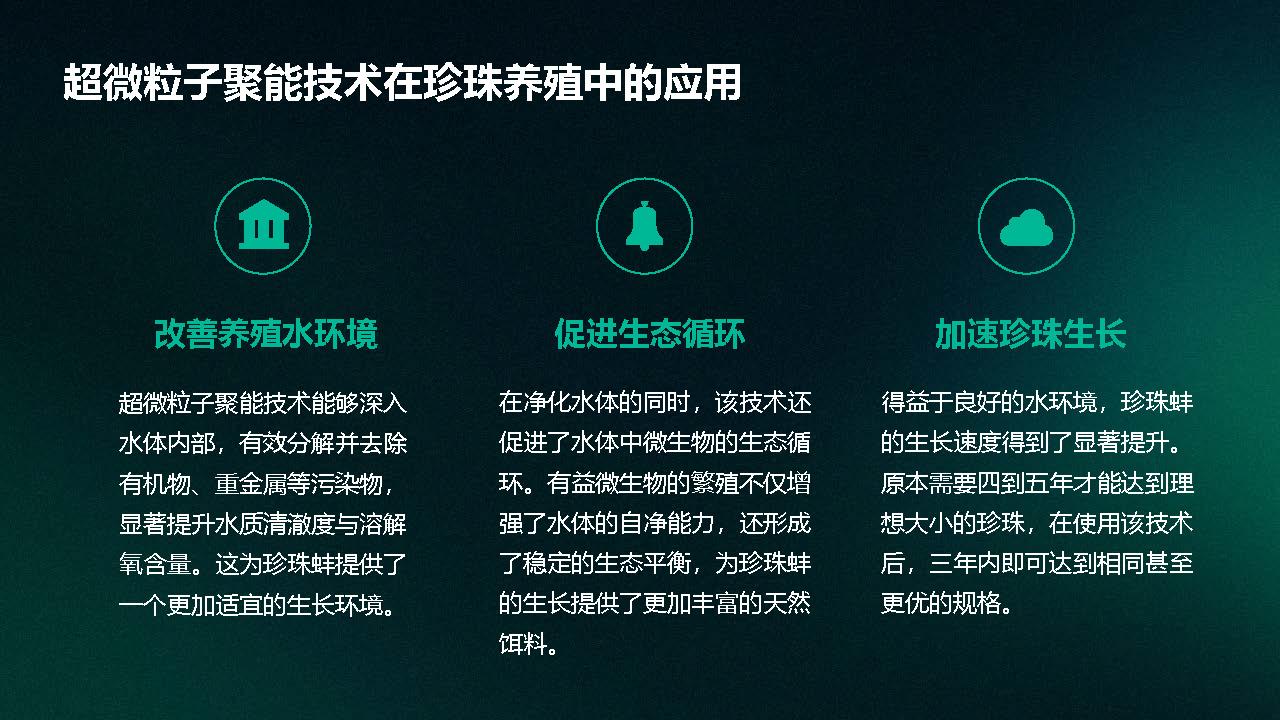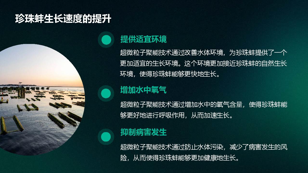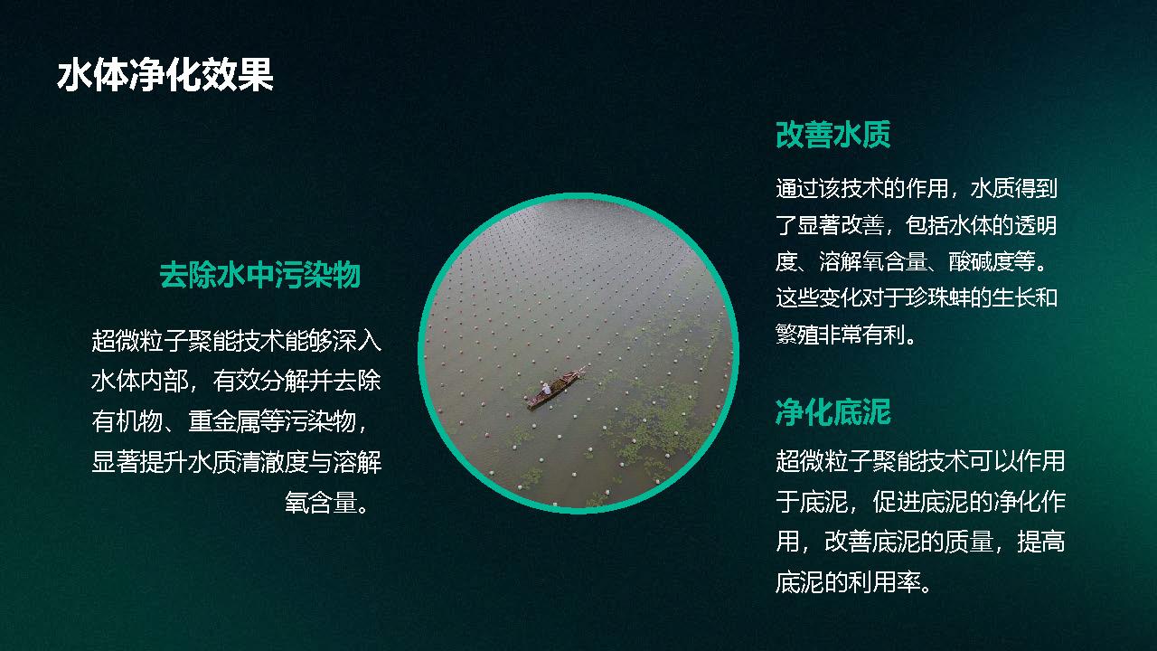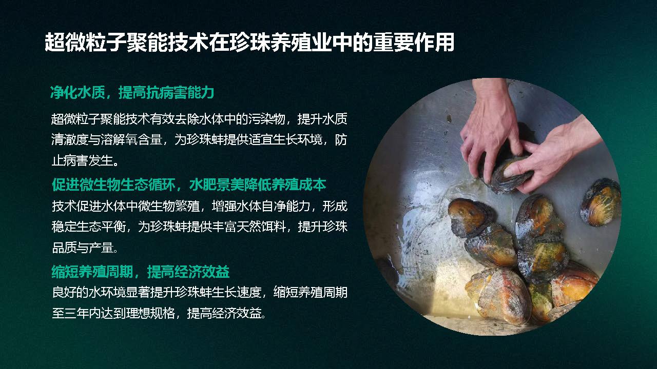 超微粒子聚能技术能够深入水体内部,有效分解并去除有机物、重金属等污染物,显著提升水质清澈度与溶解氧含量。这为珍珠蚌提供了一个更加适宜的生长环境,
